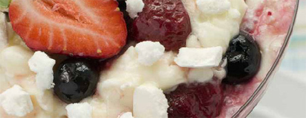 Beat the caster sugar, double cream and vanilla essence together to form soft peaks. Stir in the strawberries and meringue. In a serving glass, starting with the puree layer made earlier, alternately with the cream mix. Garnish with mint and a handful of raspberries and cherries (optional) then serve.