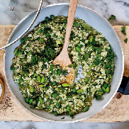 A fresh green risotto perfect for a summer evening. Add fresh spinach and plenty green beans for a tasty and healthy dish. *