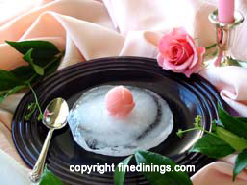 Line a small saucer with plastic wrap, fill with distilled water then freeze until solid. (Use any size plate you desire). Make one frozen plate for each serving. Make in advance.