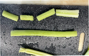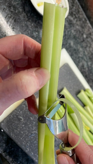 If the celery is a bit stringy, it is worth trimming off the sides (this may or may not be necessary)